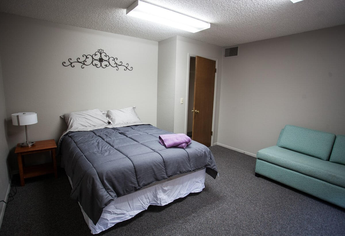The Colorado River Room offers a pleasant stay with a view of the backyard and a queen bed and sleeper sofa that fits up to four guests. A great choice for families!